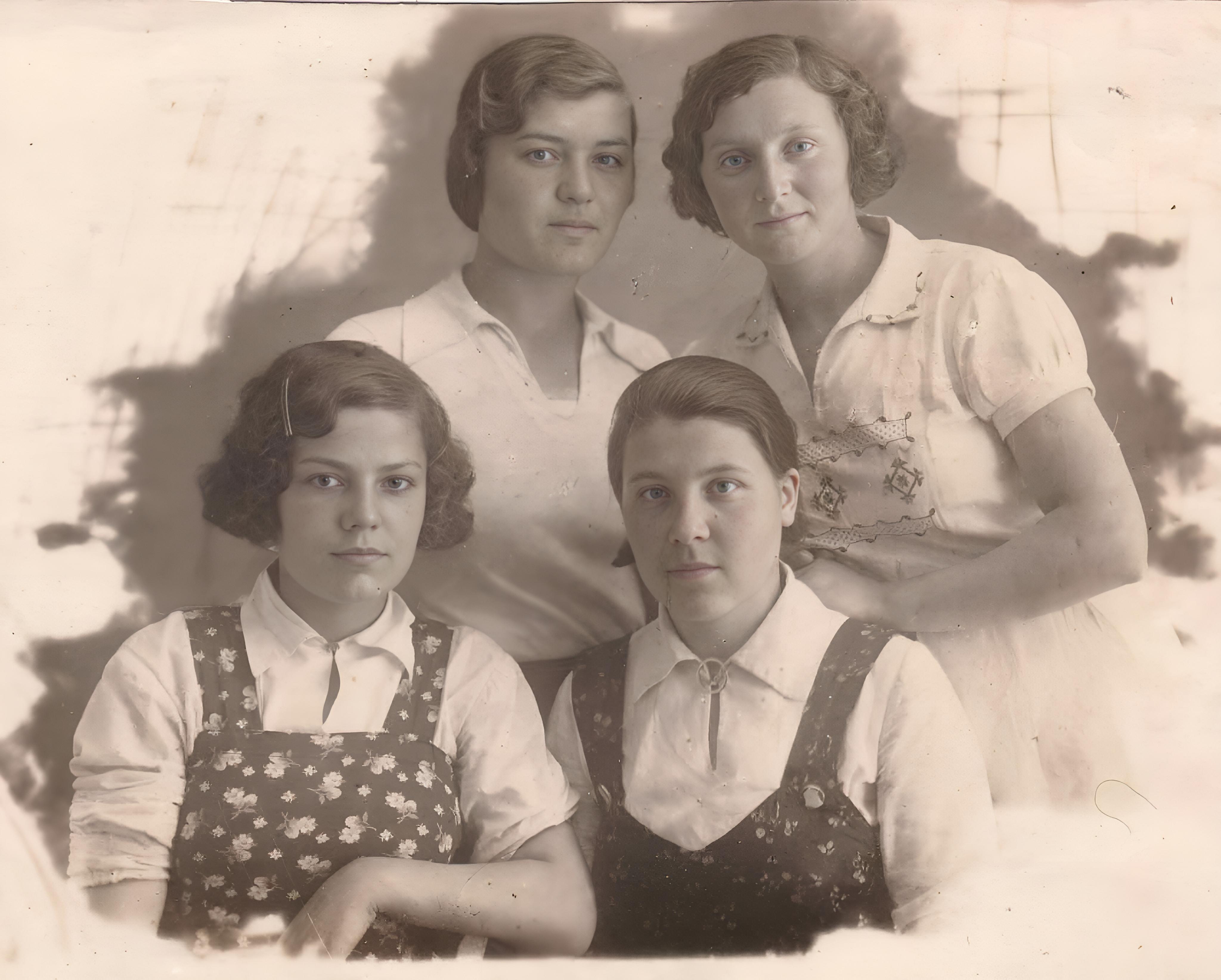 Верхний ряд слева направо — Варвара Жекова, Катюша Додончо, Мария (мейка), Дора Николлова