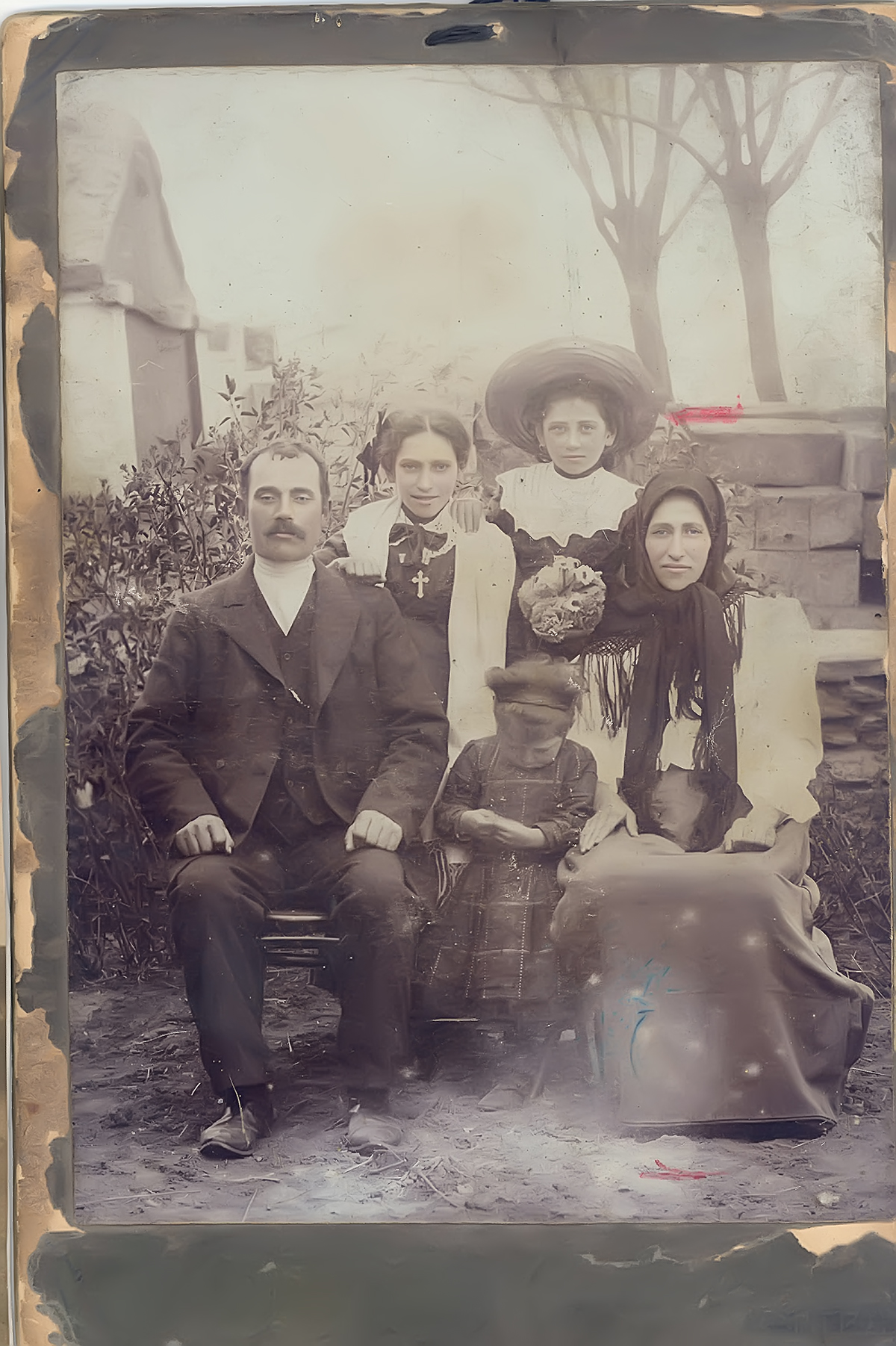 право: мать и сын Бимбас Илья, его жена Дора, их дочь Татьяна.